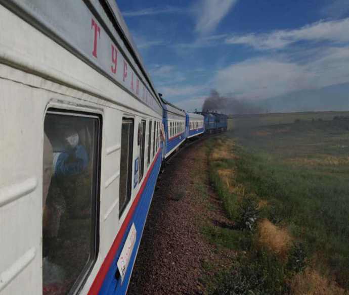 В последнее время запустили коммерческий поезд Туран с сидячими местами, по сравнению с автобусом это значительно более комфортный транспорт.