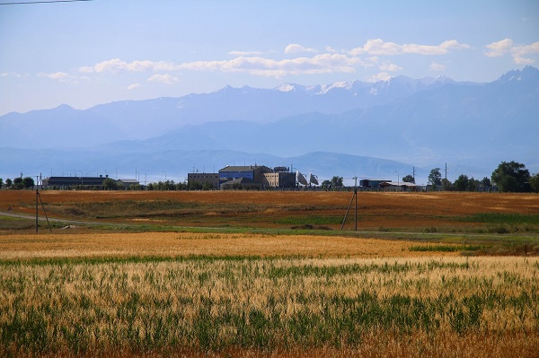 В качестве стартовой локации я предложил народу недостроенный ПДРЦ, проще говоря, полуподземный радиоцентр дивизии, находящийся километрах в 40 от Сары-Озека. Место в целом небаянное, по слухам там была некогда Натаха, она же С13, но это было очень давно и вменяемых фоток оттуда не сохранилось. Место было со спорным статусом, так как гуглоснимки выдавали беспорядочную груду голых бетонных блоков посреди выжженной степи. Есть там подземка или нет, из карты узнать мы не смогли. Ну, бешеной собаке и пять миль не крюк, решили посмотреть вживую, все равно сталкинг суть поиск неизведанного и давно забытого, ну и прочие пафосные термины. Едем, попиваем энергетик, о жизни нашей скорбной и не очень разговариваем. Дорога чудесная, утро разгорается во всей своей знойной красе, виды вокруг – потрясающие! Сделали короткую остановку - поговорить по телефону, попутно щелкнул летние степи и новенький центр космической связи (ага, у нас и такое есть):