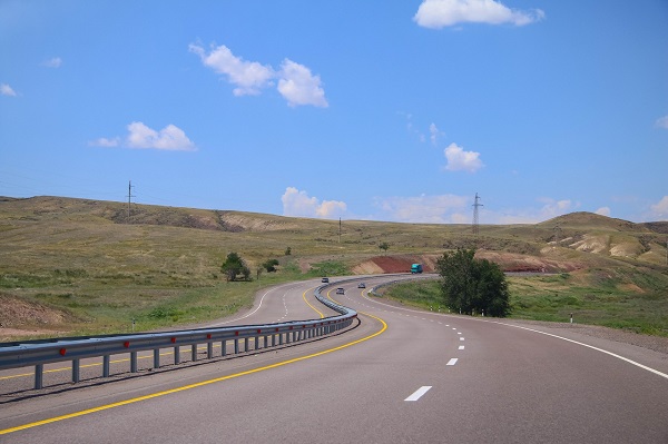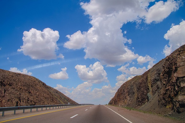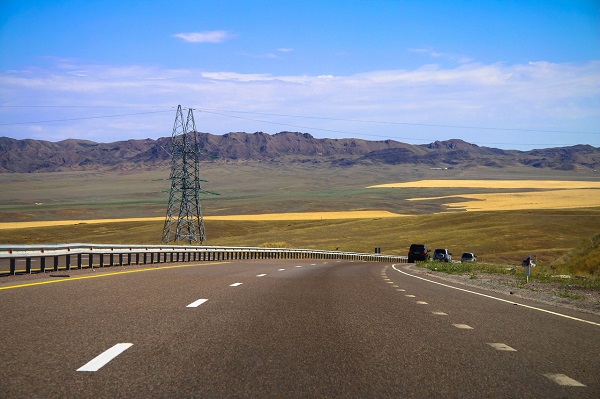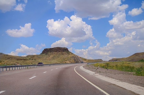 Степи вокруг выжжены беспощадным летним солнцем, среди красок преобладают желтый и коричневый цвета, выветрившиеся скалы, и жаркий как в духовке ветер. Спуск с перевала был недолгим, и вот уже развязка с заветными буквами, которые я так жаждал увидеть в 2010 году, когда впервые ехал в эти края: