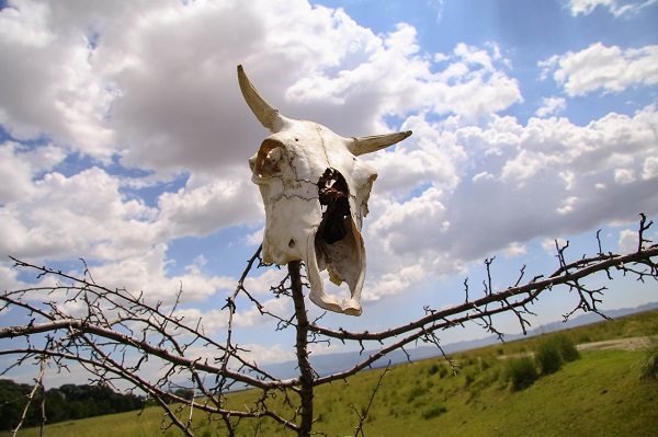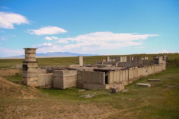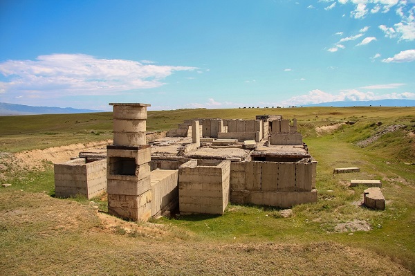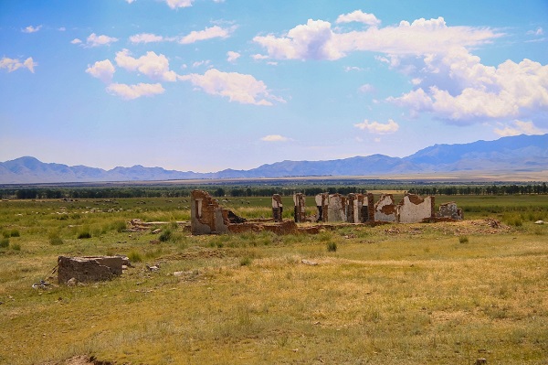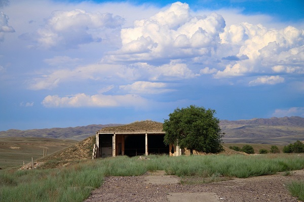 Через сорок километров, наконец, замаячил поворот на искомый поселок, за которым была раздолбанная асфальтовая дорога, ведущая к нашему недострою. Поселок, хоть и в дебрях, был вполне милым и ухоженным, у ворот одного из домов стоял вполне себе приличный Лексус, а в другом дворе местные жители красили трактор и прицеп к нему краскопультом. Прямая дорога была размыта степной речушкой еще в 90-е, и нам пришлось штурмовать неглубокий брод аккурат посреди поселка. Машина покрылась слоем грязи, а мы – испариной, потому что перспектива вытаскивать застрявший в ручье субарик никого не воодушевляла. Сразу за поселком асфальт стал чуть пободрее, но все равно было ясно, что офицерам никогда не довелось ездить по этим ухабам, и нас ждет именно недострой. На холмах паслись стада, а пастухи как обычно проявляли прямо-таки непристойный градус любопытства к машине с алматинскими номерами, таращась на нас во все глаза. Стандартная ситуация для любой вылазки, заставляющая мою паранойю и социофобию расцветать пышным цветом. Чабаны кстати были моторизованными, под кустом в тени примостился квадроцикл и пара канистр бензина к нему, оно и понятно, гонять стадо по степи сподручнее на квадрике, чем пешком. Последний поворот дороги, и мы увидели цель нашего путешествия: