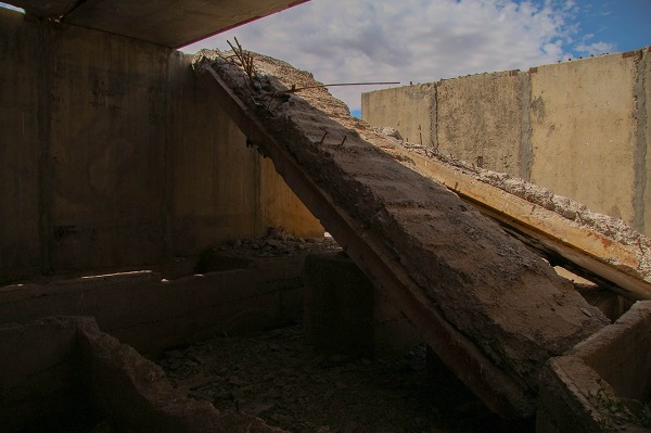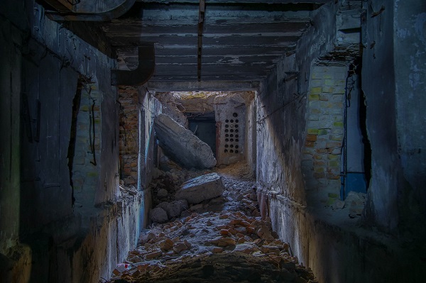 Спустились наконец вниз, страхуя друг друга, цепляясь за торчащие арматурины, и соскальзывая вниз по сухой осыпающейся глине. Состояние этих шахт в значительно худшую сторону отличалось от аналогичных на 13-м километре. Видимо, сказывается удаленность от трассы и сторонних наблюдателей, а может здесь вояки, навсегда покидая комплекс, решили напоследок основательно его рвануть, но сразу за спуском чернел огромный провал на нижние уровни, гигантская глыба армированного бетона была просто выломана со своего изначального места и сброшена вниз. Почти все перегородки между жилыми и служебными отсеками варварски разломаны, вот только зачем? Кирпич не тронут, такое ощущение, что целью было разрушение ради самого процесса разрушения.
