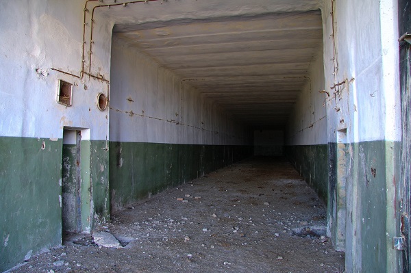 Группа сооружений на фото выше – это мощные хранилища для готовых изделий, погруженных на транспортно-заряжающие машины и ждущих, чтобы их отвезли и установили в шахты. Защищены эти хранилища толстенными железобетонными раздвижными створками, убирающимися в специальные пазы в стенах. А еще там приятное гулкое эхо, чистый и ровный бетонный пол и аварийный выход, некогда снабженный гермодверью, из каждого такого хранилища. В настоящее время это единственные сооружения на позиции, пока никак не использующиеся местными под законы или склады сена.