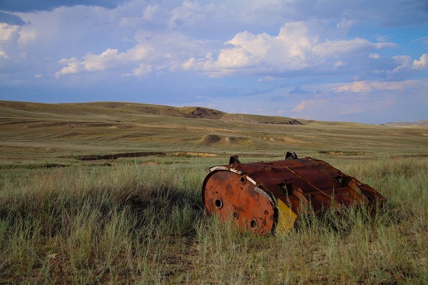 Как видите, даже этот последний ангар для работы с разгонными блоками ракет не избежал расчистки и превращения в аккуратный коровник. Позади него в густой траве лежала цистерна от топливозаправщика, непонятно как до сих пор не сданная в металлолом. Может, в ней возили гептил и местные об этом знают? Иначе как можно объяснить аттракцион столь невиданной щедрости, бросит целую цистерну посреди степи и без охраны.