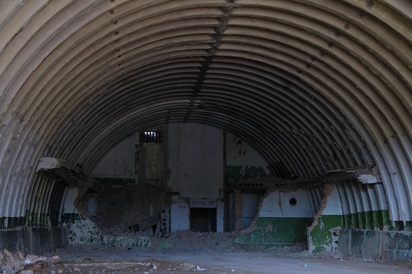 Осмотрев вышеуказанные хранилища, мы разделились. Двое наших товарищей, притомившихся более всех, остались в машине, а я с еще одним другом разошлись в интересующие нас стороны – он отправился в руины жилого городка, а я в командный центр и ангар для регламентных работ с ГБЧ (головной боевой частью, собственно, с боеголовками).