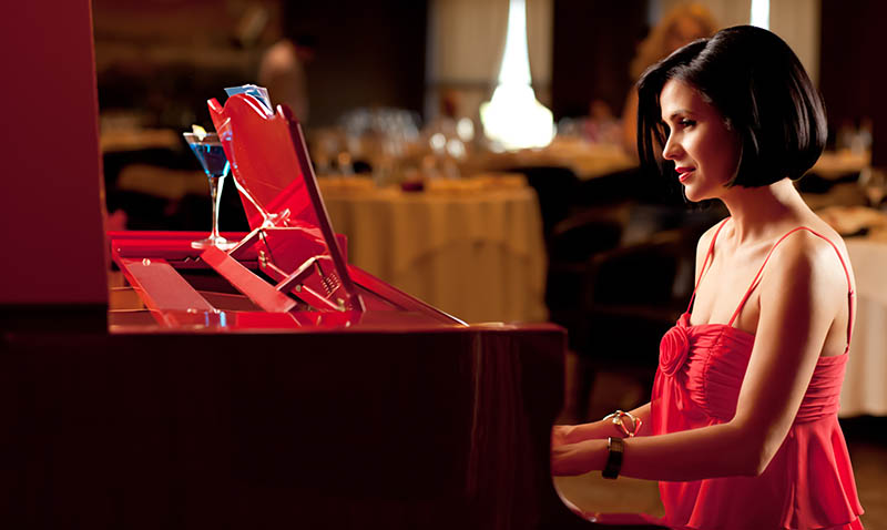 В большинстве ресторанов используется мягкое, неяркое освещение. Чтобы вас было заметно, найдите время сменить свой дневной макияж на вечерний. Вечерний мейк-ап предполагает большую яркость красок и более смелое обращение с блеском. Достаньте свои перламутровые тени, но не забудьте нанести под них базу, чтобы они не скатались. Можно, кстати, попробовать (но заранее!) влажное нанесение своих обычных теней - цвета, которые точно вам идут станут насыщеннее. Создайте ровный тон кожи, не забудьте акцентировать скулы румянами. Если у вас очень яркий макияж глаз - возьмите помаду спокойного, нежного оттенка. Если глаза выделены лишь стрелками, красная помада - самый лучший выбор.