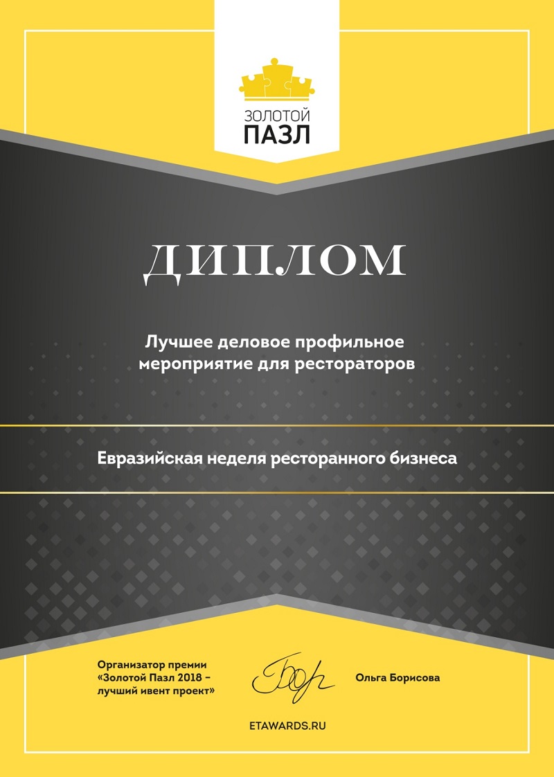 Напоминаем, что 2-4 октября состоится «Евразийская неделя ресторанного бизнеса» - крупнейший форум по развитию ресторанного бизнеса, благодаря которому вы получите ответ не только на вопрос: как создать прибыльный, автоматизированный и успешный бизнес, но и расширите свой социальный капитал.