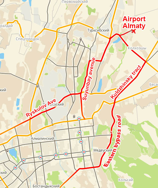 Important! The fastest way is to use the East bypass road (VOAD), Ryskulov avenue, Kuldzhinsky tract or Suyunbay avenue.