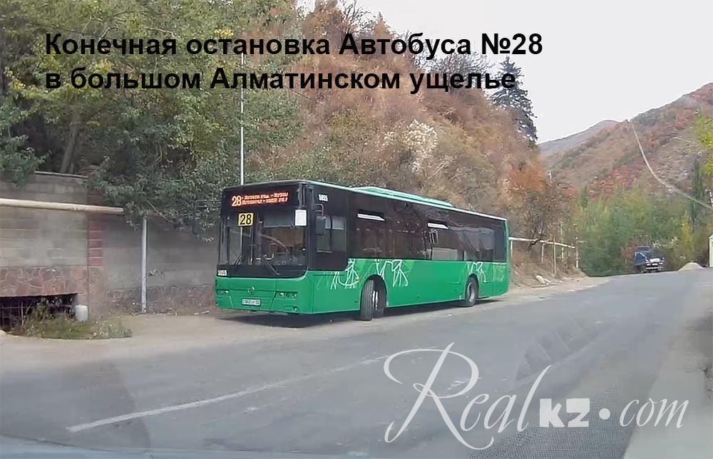 Автобус № 28 начинает свой путь от улицы Навои, около парка Первого Президента и довезет до конечной остановки – Большое Алматинское ущелье. Такой вид транспорта выгоден тем, что на эко-посту пропускают без остановки и с пассажиров не требуют экологический сбор.