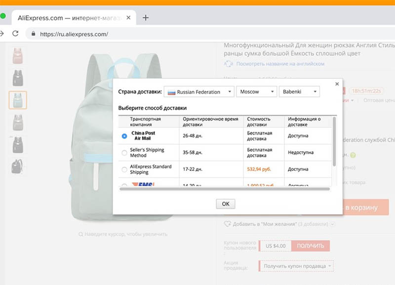 Проще всего — искать товары с бесплатной доставкой, но к сожалению она доступна не для всех товаров на AliExpress. Как правило, у любого товара есть несколько вариантов доставки, отличающихся по срокам и стоимости — например EMS или AliExpress Standard Shipping будут стоить сколько угодно до 100 до 5000 рублей, а вот China Post Registered Air Mail доставит вашу покупку бесплатно, но в два раза медленнее.