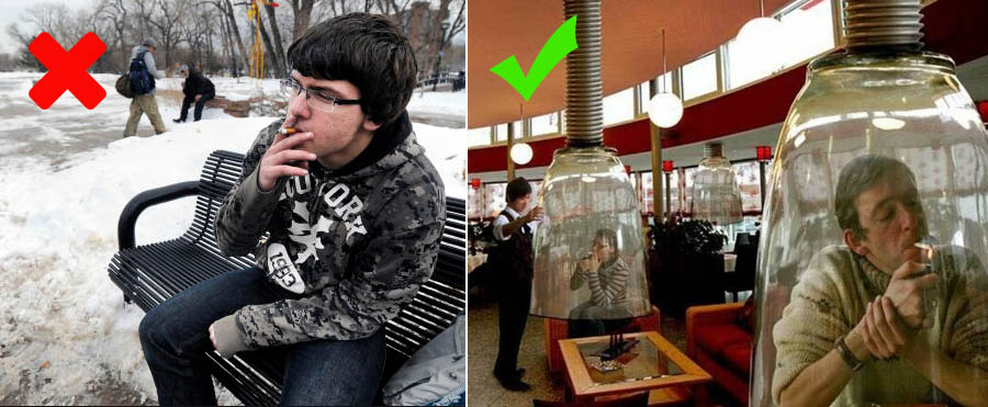 Отсутствие специально оборудованного места для курения – слабая сторона многих кафе и причина жалоб со стороны курящих посетителей. Некурящим повезло больше: в залах действует запрет на курение.