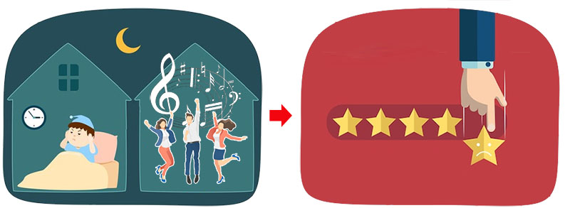 Многие заведения тесно соседствуют с жилыми домами. Громкая музыка, порой не стихающая до утра, досаждает жильцам. Их недовольство выливается в негативные отзывы.