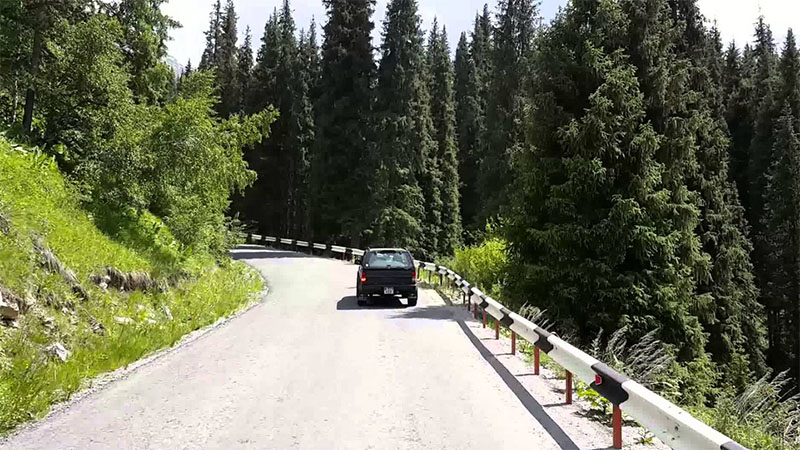 - In the Big Almaty Gorge, before reaching the pipe ("truba"), turn left, and along the serpentine road - 14.3 km.