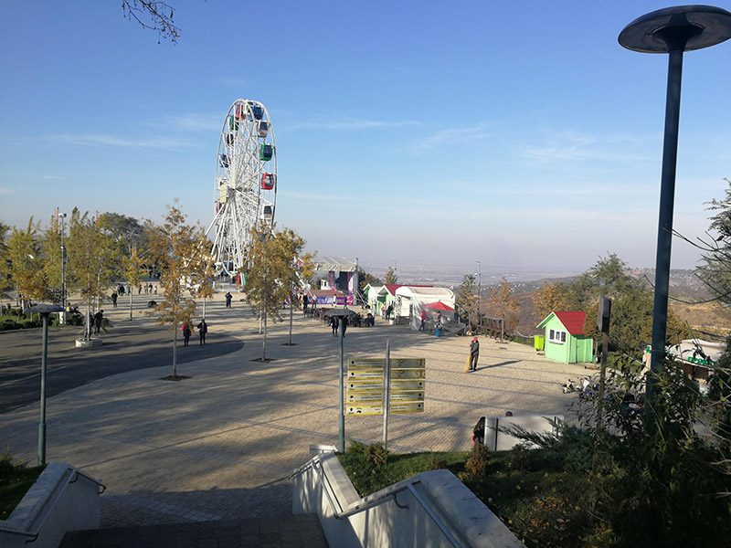 Начать подъем стоит от мечети Аль-Хамил, что у самого подножия (по пятницам возле мечети огромные пробки!). Там же недалеко можно приобрести билет для посещения парка (100 тенге или 0,3$). Будьте внимательны при обратном спуске, так как никаких тротуаров не предусмотрено. По той же дороге едут маршрутки-автобусы и велосипедисты.