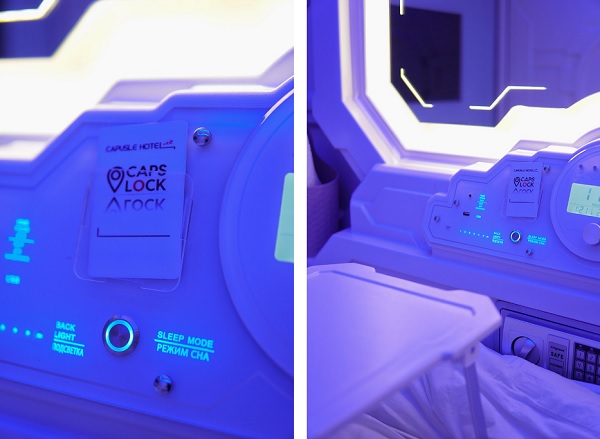 В отеле 10 капсул, каждая из которых представляет собой отдельное пространство для комфортного отдыха. По сути это большое спальное место длиной более двух метров, высотой и шириной более одного метра. Здесь посетителя ждет свежее постельное белье, возможность регулировки уровня освещения, а также необходимые в такой ситуации уединение и комфорт.