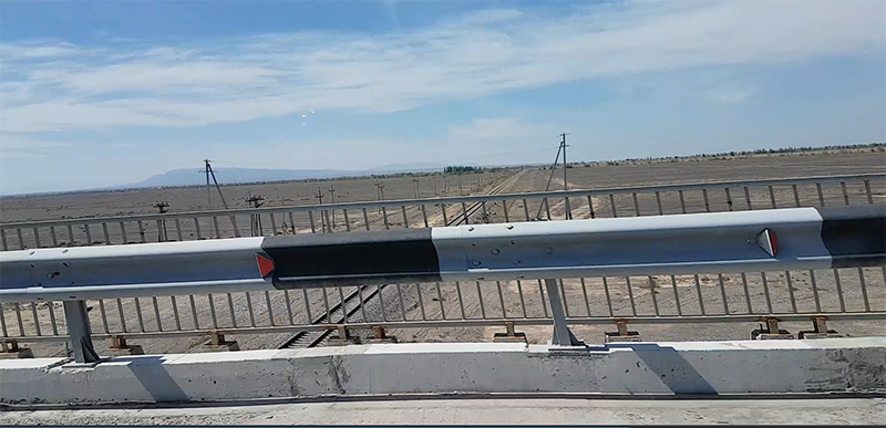 На развязке после барханов следует повернуть направо. Эта дорога похуже и скорость ограничена 90 км/час. По пути к источникам нужно проехать село Ташкарасу и высокий мост через железную дорогу.