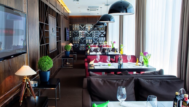 Панорамный ресторан располагает собственной бесплатной парковкой на 50 мест, раздает бесплатный Wi-Fi, есть залы для курящих и некурящих. Для удовольствия гостей в заведении звучит приятная фоновая музыка. Также здесь можно насладиться винами из разных уголков мира и блюдами европейской кухни. Если же вы хотите перекусить на свежем воздухе, вас ждет удобная терраса и освежающие летние закуски.