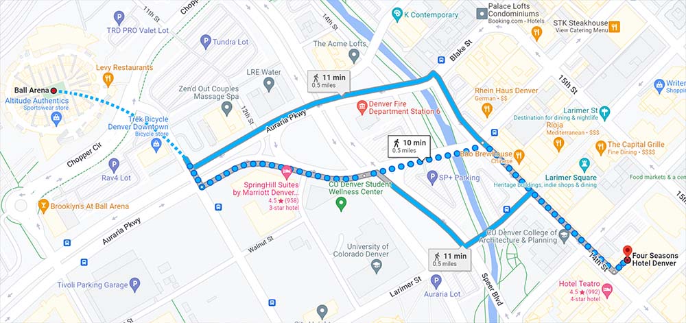 Located only 0.5 miles (0.7 km) away from Ball Arena, you can get there by foot in about 10 minutes.