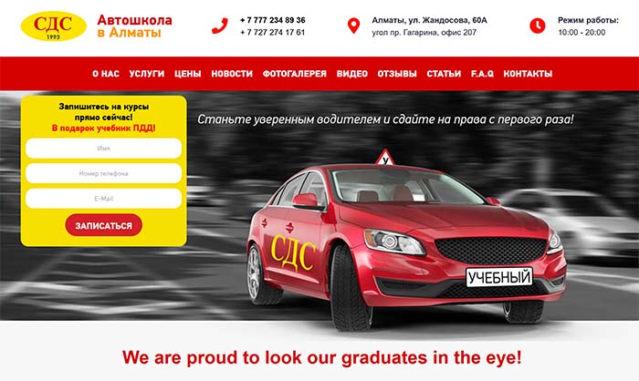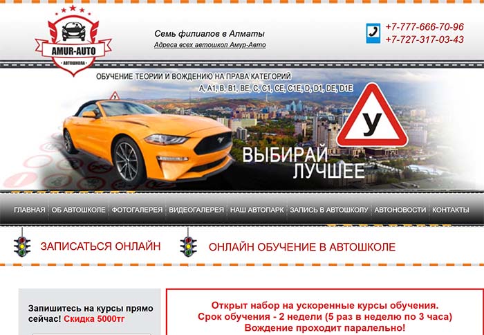 Расписание занятий и номера телефонов автошколы можно посмотреть на сайте autocdc.kz