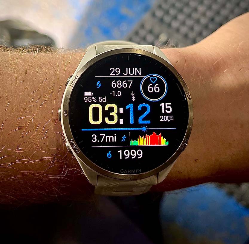 My current usage is Garmin in the morning for day to day use and workout, and Apple Watch at night for the sleep tracking.