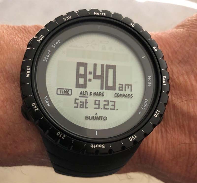 This watch is much larger than my prior Highgear Enduro, which just bit the dust after 15 years or regular use, but this Suunto Core is still comfortable on my wrist, and does not dig into my hand during movement.