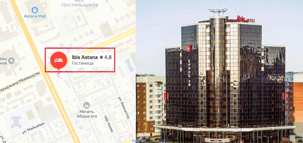 - Адрес: Ibis Astana расположен в городе Астана, на правом берегу реки Ишим, в 4,2 км от Монумента Байтерек.
