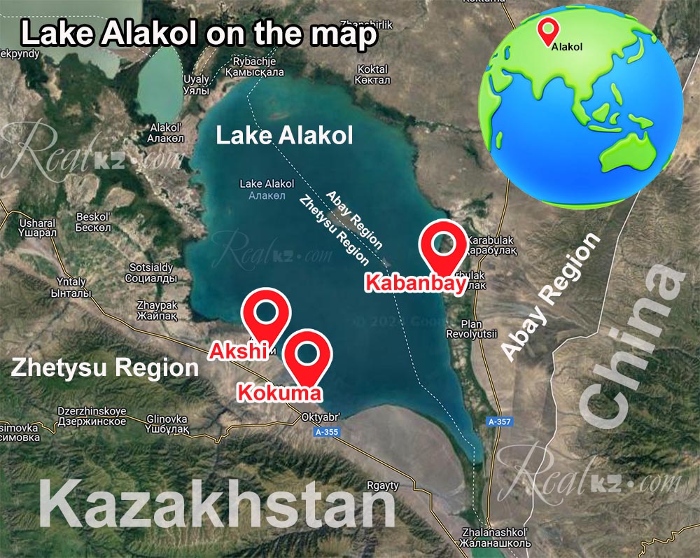 Lake Alakol is located in eastern Kazakhstan, near the border with China. It lies between the Almaty and East Kazakhstan regions, in a basin that is part of the Alakol Depression. The lake is surrounded by desert and steppe landscapes, with the Dzhungarian Alatau mountains to the southeast. Known for its mineral-rich waters, Alakol attracts visitors for its healing properties and stunning natural scenery. It is about 600 kilometers from Almaty and easily accessible by road or train.