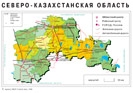 На этой карте указаны дороги с твердым покрытием и расстояние между населенными пунктами Северо-Казахстанской области.
