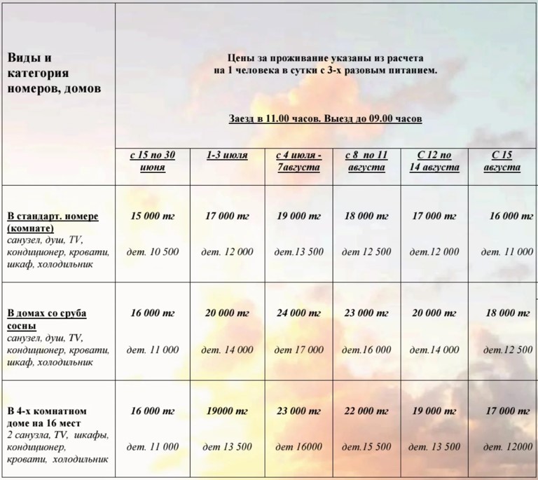 цены могут быть изменены в любой момент, уточняйте при бронировании