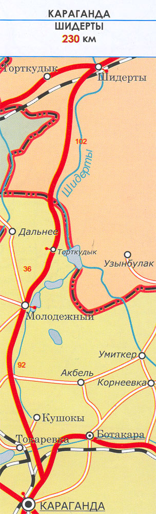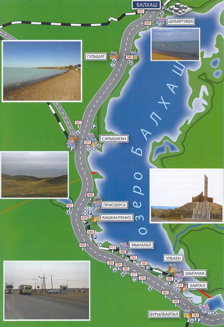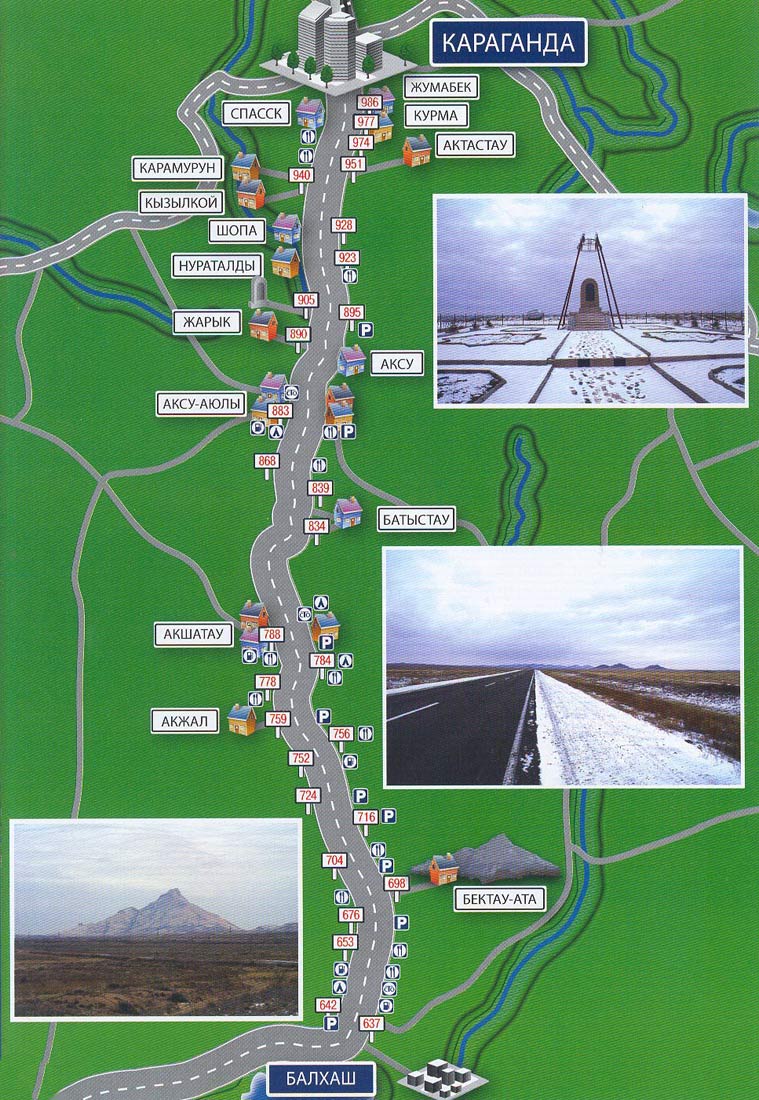 Схема дороги от г. Балхаш до границы Карагандинской области