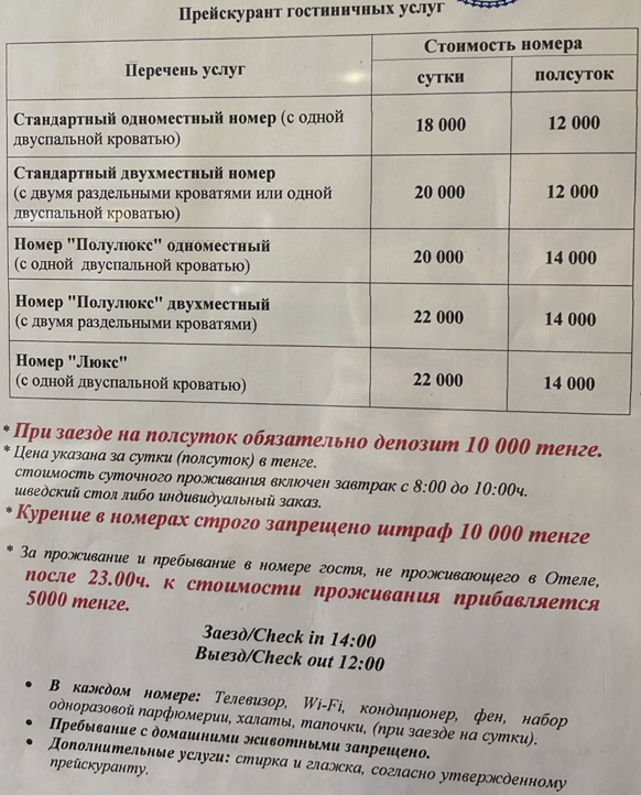 Своему постоянному месту пребывания в астане предпочёл данный отель ввиду меньшей на 5.000 цене за ночь. В итоге данная экономия обратилась выше указанными минусами.