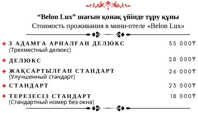 Предлагаем 2, 3 местные номера. Наша небольшая, уютная гостиница предлагает Вам 8 комфортабельных номеров, включая 2 номера люкс. Об отеле Belon life - Отель расположен в юго-восточной части Астаны, имеет 14 номеров