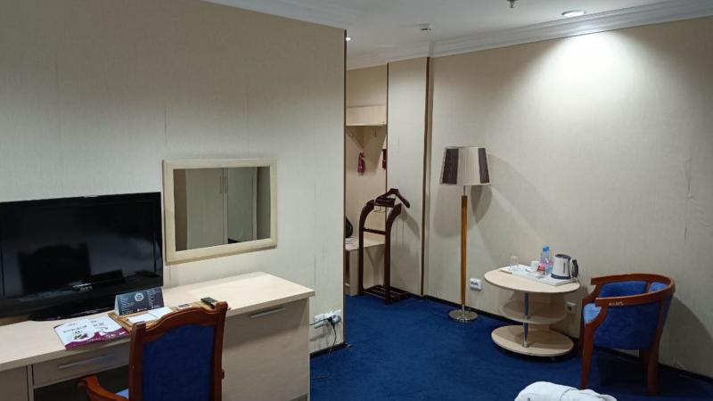 Номер очень большой. Удобная кровать, хорошее постельное и полотенца, нормальные расходники в ванной. Ооооочень вкусное питание на завтраках и ужинах❤️ Персонал приветливый и все вопросы решаются молниеносно. Для отеля 4* стоимость на двоих смешная, и это при условии полной занятости объектов размещения из-за ситуации в РФ,когда большинство отелей в Астане поднимают цены. Большие вам спасибо за гостеприимство!