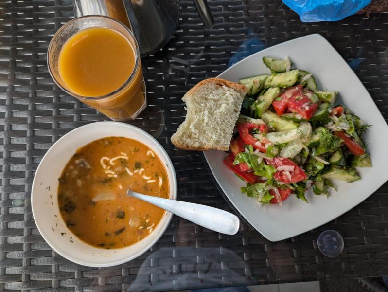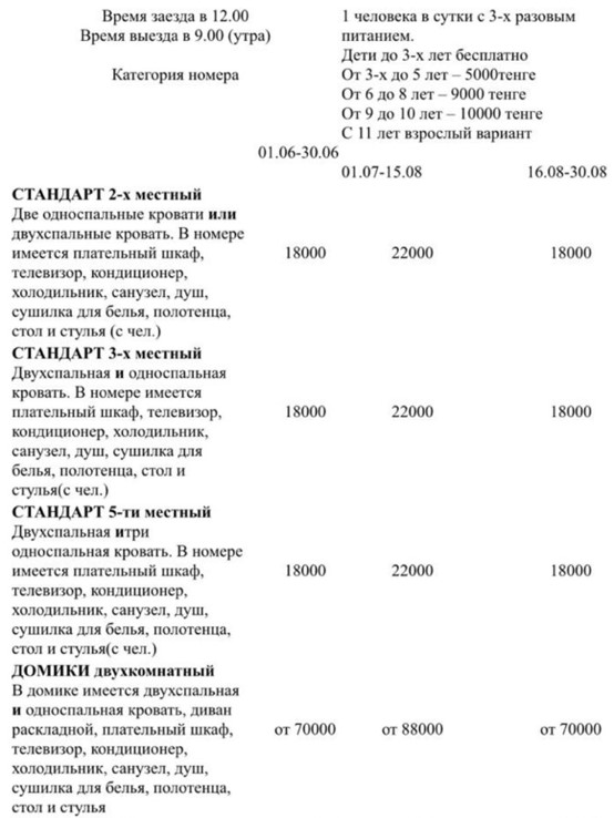 Долго искали зону отдыха, нам с апашкой нужно было именно с 11 августа выезд из Алматы, но первая береговая была не у всех баз отдыха, также была завышена цена в разных базах. Эту зону отдыха нашли случайно, так как информации мало, нет отзывов, но подкупило то, что цена -меня устраивала, плюс -первая береговая, спуск к воде для апашки - приемлемый, есть лестница. Также нам написали по Ватсапу, что встретят утром 12 августа в 6.00 и сразу же отвезут на машине. Заселение сразу, это удивило, так как в других базах отдыха заселение в 12.00 и отдыхающий должен где-то пробыть на улице до 12.00. Это неудобно, особенно если с вами - престарелый человек. А здесь - моментально - встретили, отвезли на машине к зоне отдыха, проводили до номера, выдали чистое бельё с полотенцами, мыло и туалетную бумагу также выдали. Показали, что телевизор подключен к ютюб-каналу и можно смотреть какие хочешь фильмы и передачи. Это меня сильно порадовало. Завтрак начался в 8.30, хотя мы пришли в столовую к 8.00 - нам сразу показали наш стол, принесли свежеиспеченный хлеб (ОНИ САМИ ПЕКУТ каждый день) -сливочное масло, пшеничную кашу на молоке, блинчики, джем абрикосовый, булочки с кунжутом, чай или кофе -на выбор. Скажу честно: отдыхаем каждый год на Алаколе, в разных пансионатах или базах отдыха, НО - такого разнообразия кухонных блюд я еще не видела. Блюда никогда не повторялись. На обед: борщ, салат с помидорами и огурцом, котлета, пюре картофельное, самса, свежеиспеченный хлеб, печенье, конфеты, молоко, чай и кофе в кофейнике. Это только в первый день! Ужин: салат корейский из моркови, гарнир-гречка, мясо по французски, поджарок, свежеиспеченный хлеб, свежая выпечка в виде пирожного, чай, кофе. Мы ехали сбрасывать вес, но от такой еды невозможно было отказаться. Территория: имеется бассейн, скамейки и качающиеся скамейки, детские батут, горки, везде зелень, цветы, ивы растут. На территории и в корпусе -постоянная уборка. Сам корпус был похож на санаторий - везде постелены ковровые дорожки, люстры над головой, приятные и приветливые люди, которые всегда убирали и чистили за всеми отдыхающими. Сам пляж на первой береговой, там постоянно убирали, можно было греться прямо на камнях, так как они нагревались на солнце. Я благодарна, что в этой зоне отдыха нам встретились такие замечательные люди: Повара -Катя(Кулянда),Таня, Чина. Администратор и хозяйка -Айгерим. Отдельное спасибо- Оразгали, за то, что всегда поднимал настроение и шутил. Это замечательная зона отдыха, под названием "Алтын Уя"! Честно сказать - не хотелось уезжать, так как было хорошо и комфортно отдыхать. Нас отвезли на машине прямо к автобусу, перед этим угостив прощальным ужином. Хочу чтобы эта зона отдыха - ПРОЦВЕТАЛА, и радовала отдыхающих своим гостеприимством и уютом. Спасибо вам всем! До следующего года. Мы встретимся! Заказывали транспорт: автобус с сидячими местами через Аквариду, а номера в зоне отдыха через этот сайт REALKZ.com