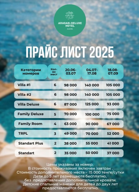 Сам Алаколь шикарный! Местоположение отличное, вдали от центра Акши. На пляже только постояльцы отеля, нет толкучки как в центре. Лежаки и зонтики бесплатно, но на всех не хватает. Понравилось отношение персонала, все очень вежливые, приветливые и корректные. Номера просторные, чистые и уютные. Мы жили в семейном. Питание в кафе по меню. Но не всё по меню есть. Пиццы не было. С того что ели, что-то вкусно, что-то не очень, но всё свежее! Но мы очень привередливые в еде. Шашлыки вот очень вкусные! Цены в кафе приемлемые.