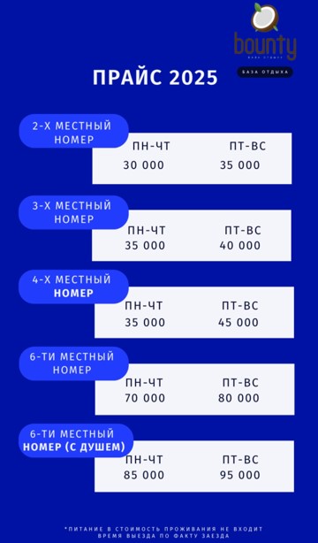 цены могут быть изменены в любой момент, уточняйте при бронировании