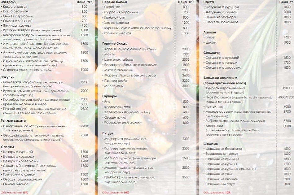 - кафе (европейская, кавказская кухня, с 8:00 до 23:00)