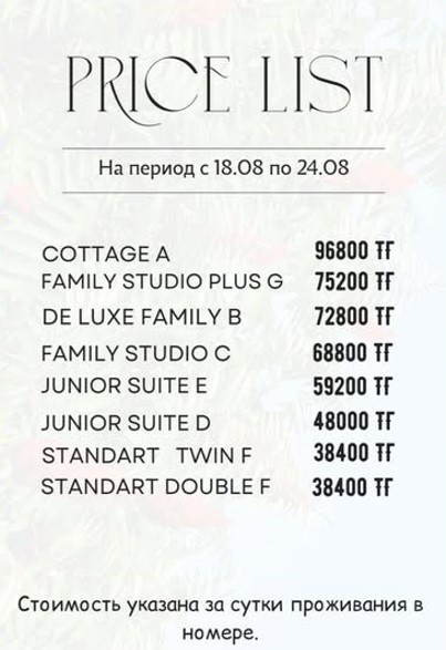 Я отдал под 50 тыс за номер без питания, номера уже заезженные везде паутины, душевые желтые, питание дорогое хотя за эти деньги могли и включить его туда, персонал недовольный чем то им надо на базар идти, советский подход типа не нравиться не приезжай или никуда не денуться все равно приедут, далеко вообщем им за почетное название лучший пансионат культуры и быта, то что люди к ним едут это их и портит, начинают зажираться и расслабляться.