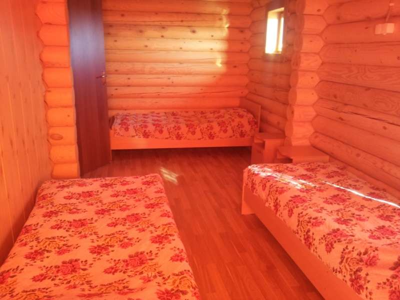 в Коттеджах: (сруб дерево) 2 этажа (2 спальни по 3 кровати в каждой, кондиционер, холодильник, душ, караоке, двд), 1 с.у. совмещенный. Допустимо размещение в 3-4 мест стандарте +1 человек, в коттедже 8 мест +2 человека.