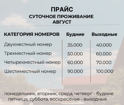- При позднем выезде после расчетного часа с 14:00 до 18:00 плата за проживание начисляется в размере 50% от суточного тарифа;