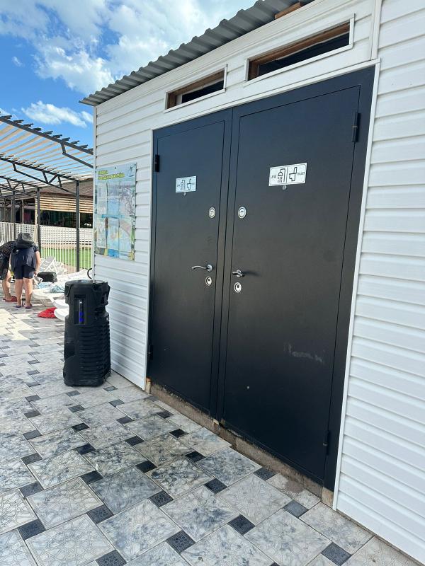 Здравствуйте Дос. На территории базы отдыха недалеко от пляжа есть туалет и душ. Прилагаем фото.