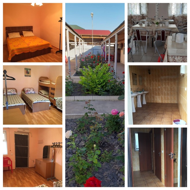Есть два здания: основное с удобствами внутри и справа, дополнительное, удобства (душ, туалет) во дворе.