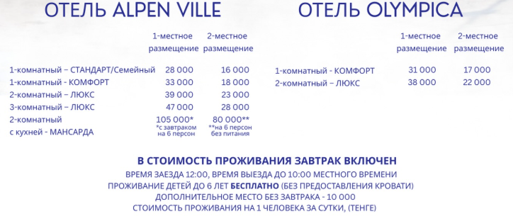 Уникальность комплекса не только в его расположении, сочетающем городской район с волшебным микроклиматом Алматинских предгорий, но и в многообразии предлагаемых нами услуг. На территории комплекса расположени две гостиницы Alpеn Ville и Olimpica по 27 номеров каждая