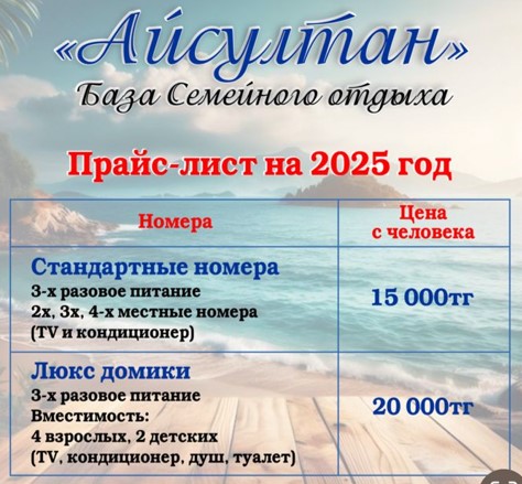 Мы были в Зоне отдыха Айсултан с 5ля по 11июля 2024год нам очень все понравилось территория ухоженная чистая питание разнообразное очень вкусно пастельное белье не застиранное персонал вежливый гостепреимнвй большое им спасибо!!