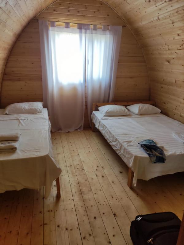 Из плюсов хочу отметить комфортабельные деревянные дома на территории, где очень просторно и приятно находиться. Не жарко, хорошо продувается. Есть так же кондиционер, телевизор, небольшой холодильник. Постельное белье и полотенца чистые. На территории есть бассейн, где с удовольствием купаются и дети и взрослые. Утром он прохладный для купания, к обеду уже комфортно. Недалеко от бассейна волейбольная площадка. Пляж свой, большой, места и шезлонгов всем отдыхающим хватает. Столовая, где находится бар, вмещает всех гостей. Питание нам с мужем понравилось, всё вкусно, всегда наедались. Другое дело, кто что любит из еды, у каждого свои предпочтения. Цены на баре средние, не завышенные. К примеру пиво, Мохито от 500тг, мороженое от 350тг.