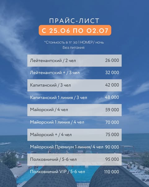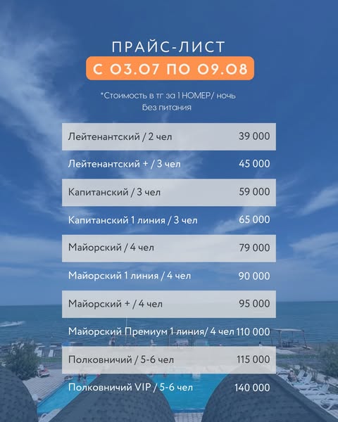 Прайс-лист сезона 2026 года