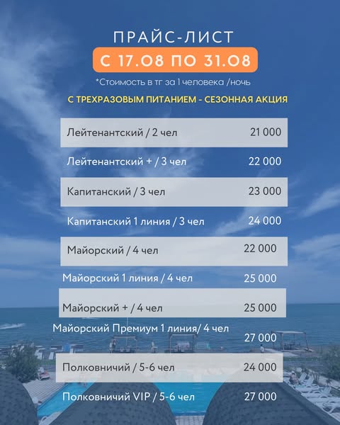 ❗️Трехразовое ПИТАНИЕ входит в стоимость проживания только в акционные сезоны.
