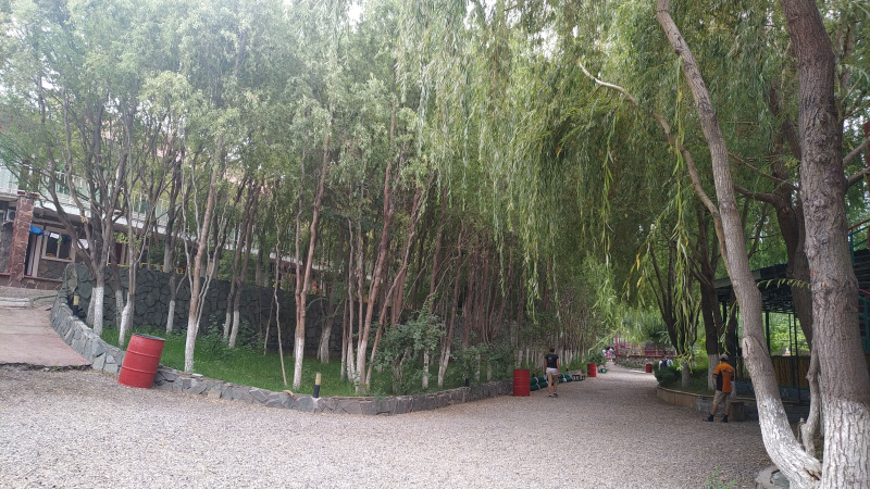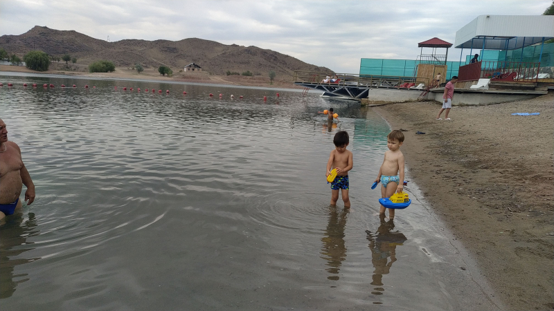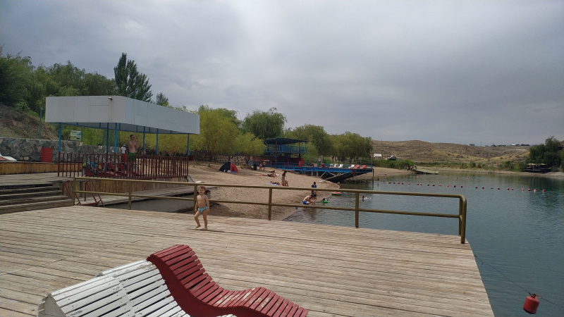 Все понравилось! Персонал приветливый. Встретили нас Ерулан и Елена. Мы приехали в 9 утра. Расположились на берегу под деревьями. Достаточно большая и чистая территории. 2 бассейна- взрослый и детский. Во взрослом мы искупались, а в детский не ходили. Множество столиков, чтоб сесть и перекусить.