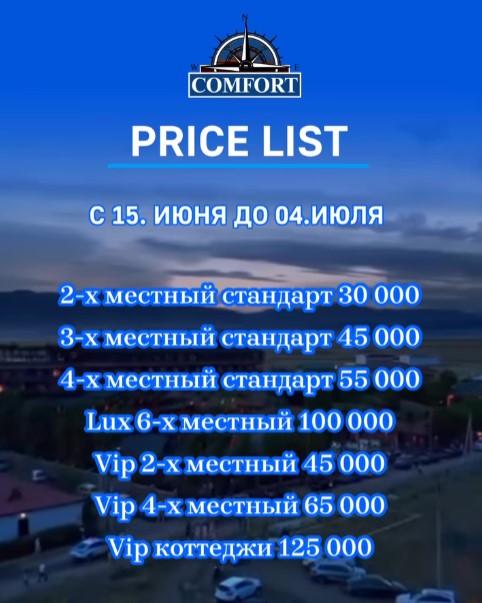 Добрый день! Второй год отдыхали в зоне отдыха "Комфорт" с 18 июля по 27 июля, приехали с Алматы. Нас сразу с поезда встретил работник зоны отдыха Жанат. Очень классно отдохнули. В номерах очень чисто, просторно. В номерах кондиционер, холодильник, душ и туалет. Зона отдыха находится не далеко от пляжа, можно за 10 минут дойти пешком, но всех отдыхающих по возможности отвозят на электрокаре. Вода прозрачная, тёплая. На территории есть летняя площадка, а также детские площадки для детей. В этом году Комфорт установил на пляже зонтики. Хотим выразить огромное спасибо администратору Бакыт, такая отзывчивая, внимательная, улыбчивая, милая женщина (кто пишет обратное - это завистники с рядом стоящих мелких зон отдыха), никогда не откажет, поможет по каждому вопросу. А также спасибо директору зоны отдыха Данияру. Кухня вкусная как домашняя. Повара Гульнар, Жанна и Еркебулан очень вкусно готовят, порции большие. Восхитительная выпечка, можно заказать сирне и шашлык, а также коктал очень вкусно. Заказывали шашлык из утки, никаких нареканий, все вкусно и чудесно. Что касается персонала, радушный персонал, все официанты, водители очень дружелюбные и вежливые, готовые всегда пойти клиенту навстречу. Тех.персоналу Самал, Сая, Гулим и Гульжан спасибо Вам девочки за чистоту и порядок в комнатах. Отношение персонала к гостям - как к родным. Также приятно что нас не забыли с прошлого года и весь персонал встретил наш радушно. Спасибо всему персоналу зоны отдыха (Даурен, Жасулан, Мади, Изет, Наргиз, Айнур, Куралай, Кумисай).Спасибо за гостеприимство Бакыт и Данияру. Базе отдыха "Комфорт" больше позитива, чем негатива, поэтому мы еще вернемся туда отдыхать на следующий год. А "Комфорту" процветания, хороших гостей и только развиваться и расти нам на радость. Впечатление осталось потрясающее! Так что если вы ищите где остановиться, в котором вам было бы просто супер. Очень советуем. Все молодцы. Всем огромное спасибо.