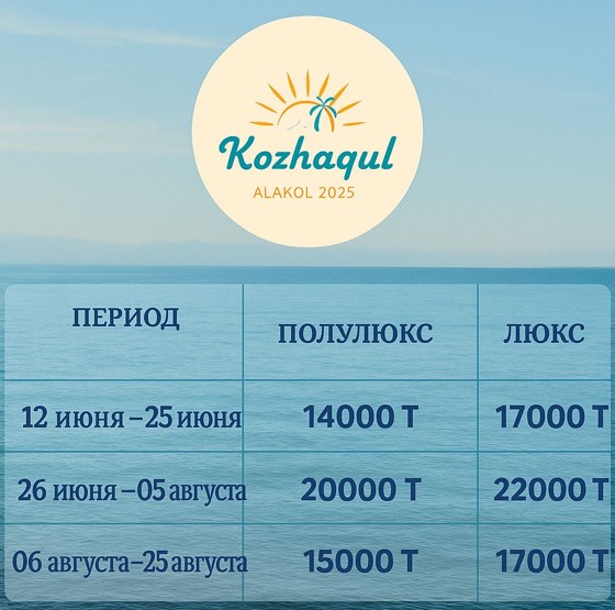 Предлагаем 2х, 3х, 4х местные номера. Центр семейного отдыха "Қожақұл" предлагает вам комфортабельные номера на побережье оз Алакол (200метра от пляжа)Номера все с кондиционерами. В номерах люкс имеются:туалет, душевая кабинка, телевизор, холодильник,кондиционер, шкаф, кровать,стол и стулья. В номерах стандарт имеется шкаф,к ровать и кондиционер, душ туалет на улице(смывается). На территории также имеются детские площадки и летние кафе с музыкой и дискотекой. Для вас будет готовить лучше повара! И вкусные,сочные шашлыки из баранины.