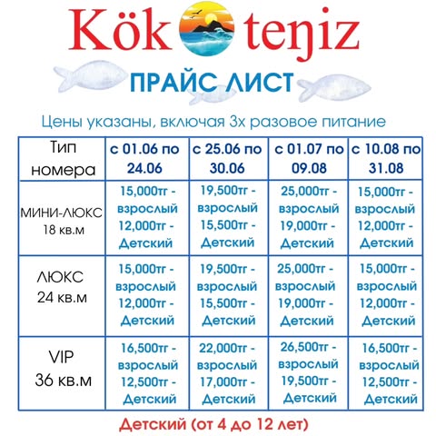 Благодарю Kok-Teniz прекрасным отдыхом.Отличная база отдыха👍. Питание все прекрасно👌Все чисто и новое
